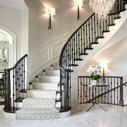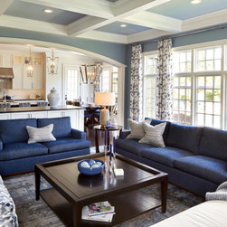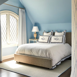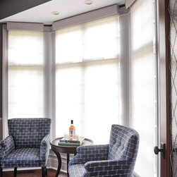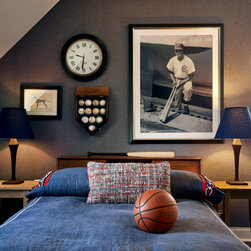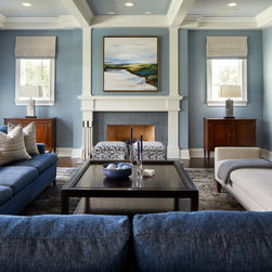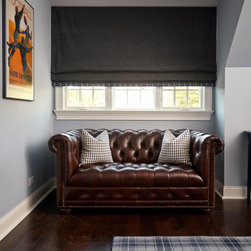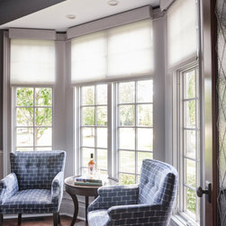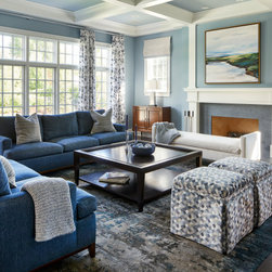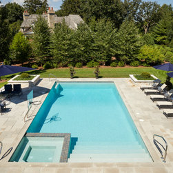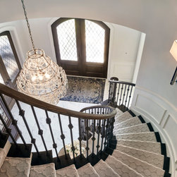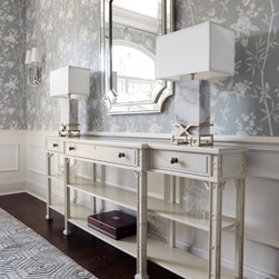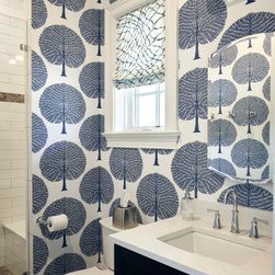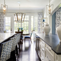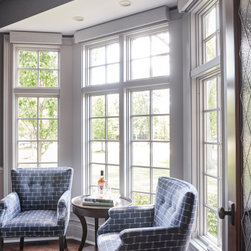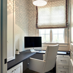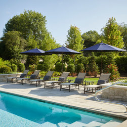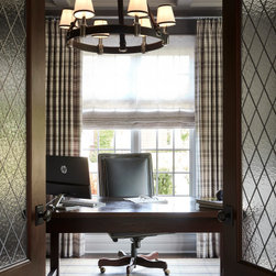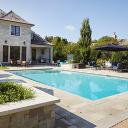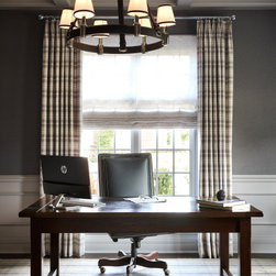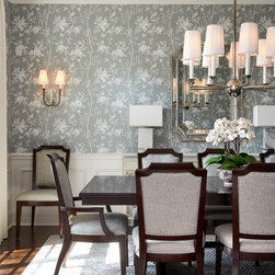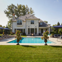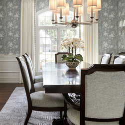 Finishing touches and attention to detail turned this newer construction blank slate into a warm and comfortable home for an active family of five. Outside, boxwood centered raised planting beds by Mariani Landscape provide structure and statement to the already gorgeous pool. Furniture from Brown Jordan and umbrellas by Treasure Garden give symmetry and beauty to this wonderful space. Inside, draperies, wallpaper, all new lighting, and rugs add texture and warmth as well as a pop of color to the well scaled rooms. The piece de resistance is the foyer chandelier by Vaughan Lighting comprised of over 150 glass horseshoes. In the library, fabric walls, a Plaid Tattersall rug and Ralph Lauren chandelier make this room a gentleman’s oasis. The dining room is elegant, yet light; traditional wallpaper meets transitional lighting and furniture. The teenage children’s bedrooms are beyond cute. Much like this wonderful family, this home exudes classic good taste.
