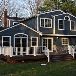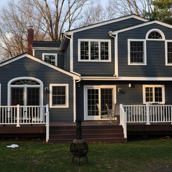 A multi stage project that renovated almost the entire home. Hard plank siding with Azek trim work. Custom kitchen designed, built and installed by us.