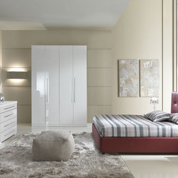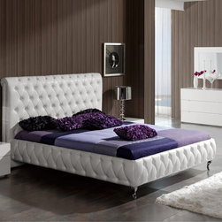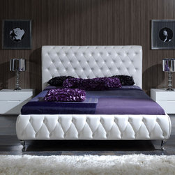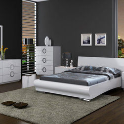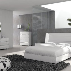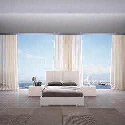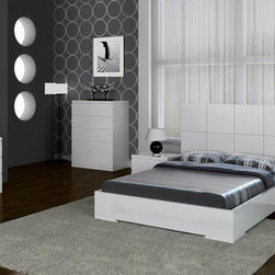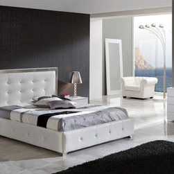 Experience the style of modern living with this luxurious and functional Athens bedroom set in white. The set includes Bed, Nightstand, Dresser, Wall Mirror and Stool in white finish. The bed features tufted head board and frame in leatherette, and a spacious storage underneath.
