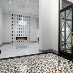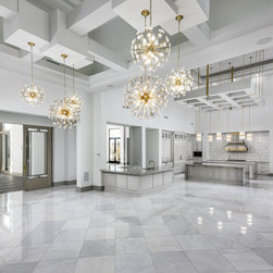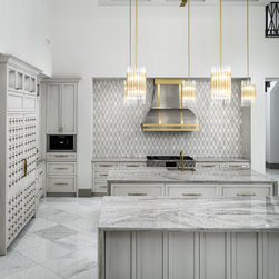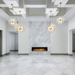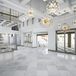 The family who commissioned this modern chic home wanted tons of luxury with lots of modern touches and our team of experts took notes. We loved curating this home's custom ceilings, the stone floors and countertops, and the luxury details throughout. Enjoy this photographic tour of one of our favorite homes to-date! Featuring a gourmet, chef's kitchen with custom white cabinets, marble countertops, custom lighting fixtures, double kitchen islands, custom stone fireplaces with surrounds, and custom millwork and molding throughout. This home is truly luxurious.