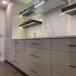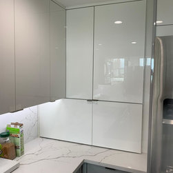 White custom kitchen. Luxe High gloss material.