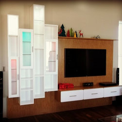 Design Consultant Cressa Gamache. Ultra modern wall to wall slender entertainment center