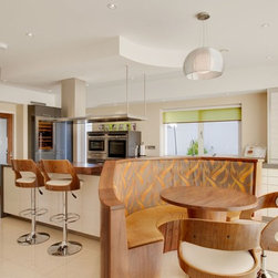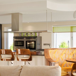 great view into the open plan living room and also showing the nice detail on the reverse side of the booth seating. We outsourced the frame of the booth to an extremely talented local craftsman - it took a lot of time and work but the finished product was worth waiting for