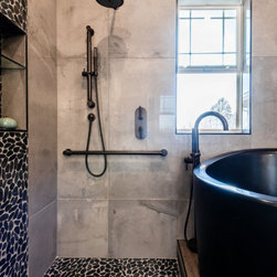 BONSAI was contacted to create an age in place suite for the clients mother. In doing so it presented an opportunity to utilize the space over the existing garage for the new self-contained unit. The existing mudroom was redesigned to accommodate a pneumatic elevator, dog wash station, and floor to ceiling storage cabinets. The second story addition serves as a passthrough between the existing home and new suite, while seamlessly blending into the existing house. The main floor dining area was remodeled to house two folding glass accordion doors which open to the rear garden. The new master suite has radiant heated tile floors throughout, a micro kitchen, and master bathroom complete with Japanese soaking tub.