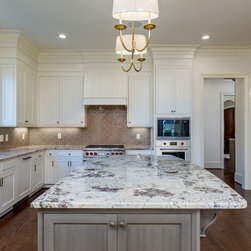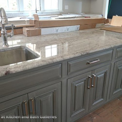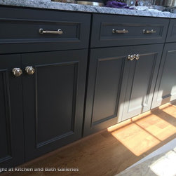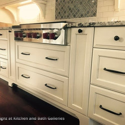 Brighton Urban Bronze Island with Crystal custom cabinets on perimeter in Designer White, beaded inset.