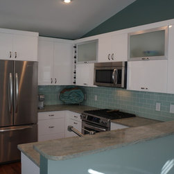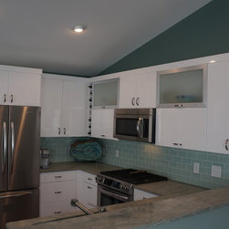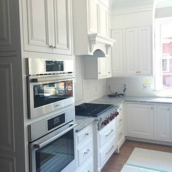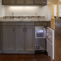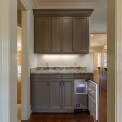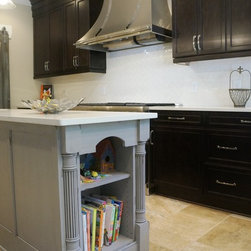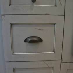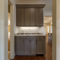 Frosty White with Pewter glaze custom designed cabinets.