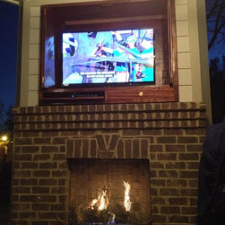 Patio fireplace, Brownstone installed a tv cabinet with dvd.