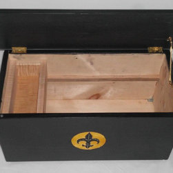 barbers tool box with carved Fleur de Lis