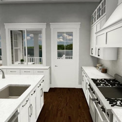 This home was designed for a point lot on Lake Norman, with main channel views on one side and cove views on the other, for clients who love the New England style homes. They also needed a 4-car Garage with a Workshop, and ample room for entertaining and expansion on the Second Floor.