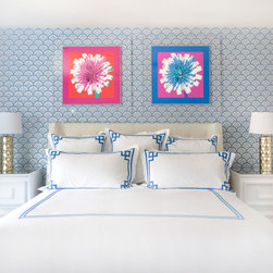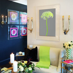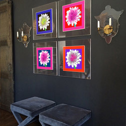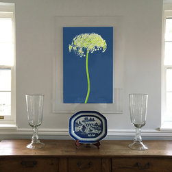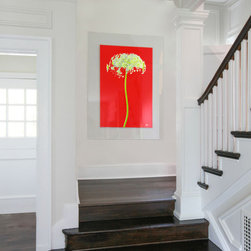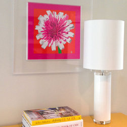 Flower With Stem and Dandelion. Photograph framed in acrylic frame with border, interior by Liz Caan Interiors.