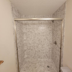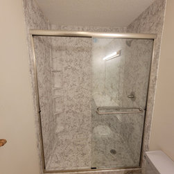 We removed a tub/shower combo and installed a custom designed walk in shower with glass doors.