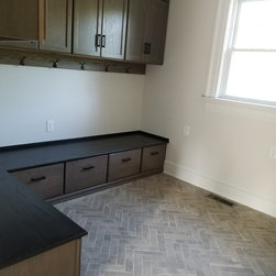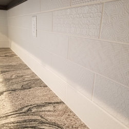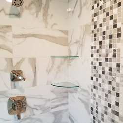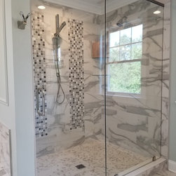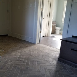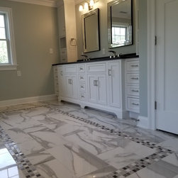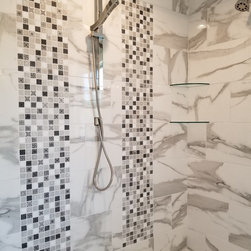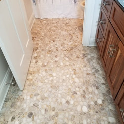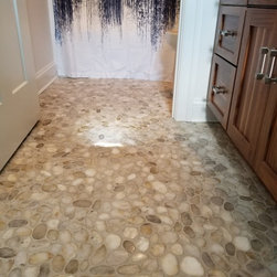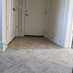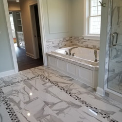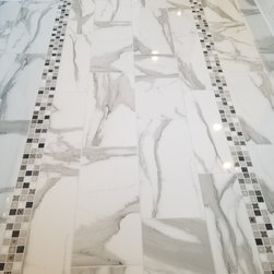 This was a new construction home where every detail was meticulously selected by the homeowner. The master en suite is spectacular, with polished porcelain tile and a breath-taking mosaic, that accents the floor and the shower. Brick-looking porcelain in a herringbone pattern, flat pebbles, and black lava tiles are just other elements that create this beautiful, warm, inviting home...