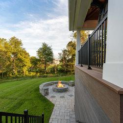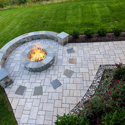 Alexandria Sloped Yard - Raised Patio, Fire Pit, & Water Feature