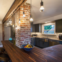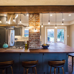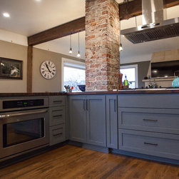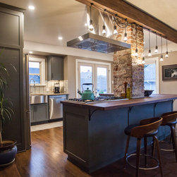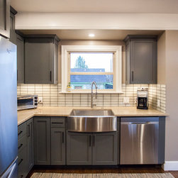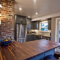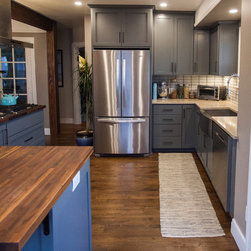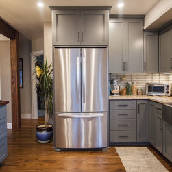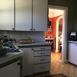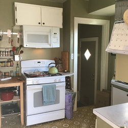 This tiny kitchen became a user friendly open concept by removing two walls, changing the walk path from the back door and adding french doors to the deck.