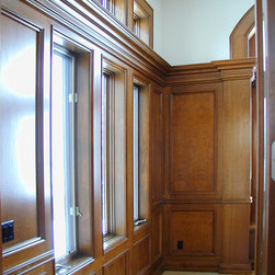 Cherry Trim carried three-quarters of the way up the wall. The panels were carefully laid out with the windows.