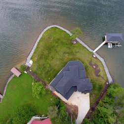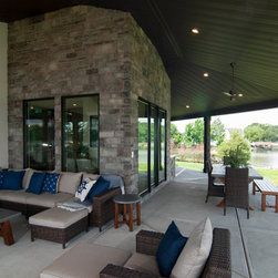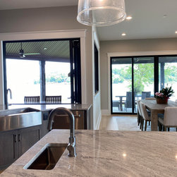 The goal within the restrictions of all the lot setbacks was to achieve a reasonable size family home with an open layout for the main living spaces maximizing lake views, with 4 Bedrooms, 3.5 Bathrooms, a small Home Office, a Bonus Room, and lots of indoor-outdoor connectivity from the main living spaces to the ample outdoor Covered Porches for entertaining, and these Porches provide shading from the late afternoon sun. The wife loves the bi-folding window at the Kitchen sink so she can still have a conversation with her husband as he is grilling just outside the Kitchen on the Porch. The Master Bedroom and Bathroom both have great lake views, as well as a large slider to access the Covered Porch, and there is a Storage Closet on the Porch just outside the Bedroom for storing porch furniture cushions when storms roll through.