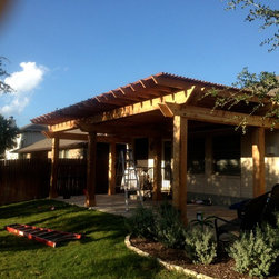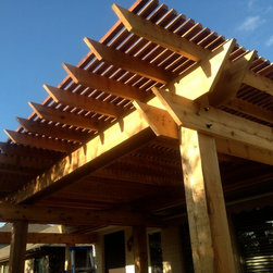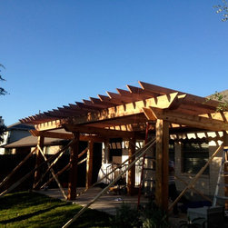 8x8 Columns 2x10 and 2x12 Roof Supports 2x6 Joists 16" OC with 2x2 Shading Western Red Cedar with Behr Cedar Stain