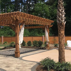We relayed the existing pavers and sealed them, poured and painted a concrete slab which we built a custom built pergola.