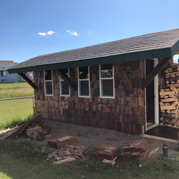 Cedar shaker shed. 48" over hang makes this shed unique and beautiful. 6K packages built within code Okotoks and Calgary.