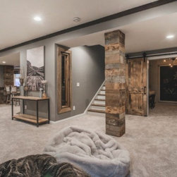 Basement renovation development. Rustic approach with warm earth tone wall colors. Upgraded carpet underpad makes this living area warm and welcoming.
