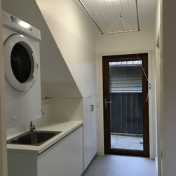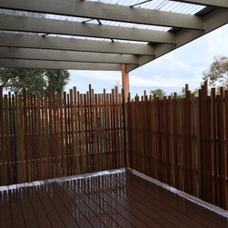 A house with a view to the sloping backyard, built with energy efficiency and recycled and low embodied energy materials. Creative and beautiful recycled timber privacy screen was erected in the back deck which is linked with bifold doors to the kitchen and living area. Hydronic heating and reversed brick veneer provides both visual and thermal comfort. Client's requirement of a very environmentally friendly and space efficient laundry, that doesn't care if the sun doesn't shine. Coupled with 4.5 kw of photovoltaic system, this house will be a Very Pleasant one, indeed.