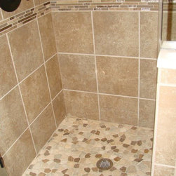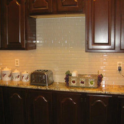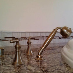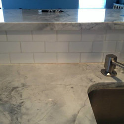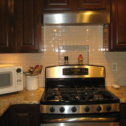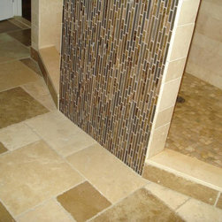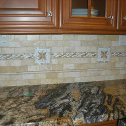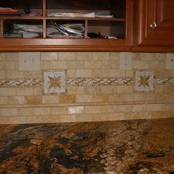 Backsplash: 3x6 Crema Durango Light Tumbled.