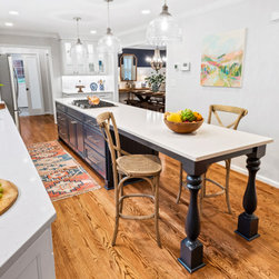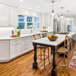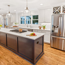 These homeowners wanted their kitchen to be more open to the living and dining areas. Walls were removed and doorways were widened. A new long island features the cooktop and seating for the family of 4. Plenty of uninterrupted countertop provides lots of room for food prep. Guests and family now have plenty of room to gather in the kitchen and the traffic flow is greatly improved.