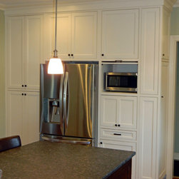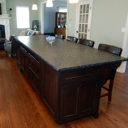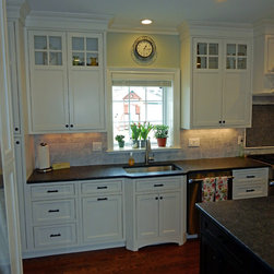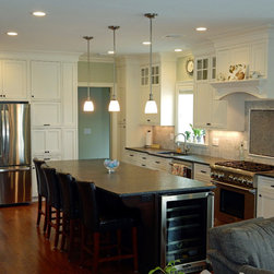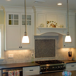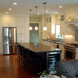 One of a kind custom kitchen designed, built and installed by us. Copper barrel roof at portico with custom brackets. One of our favorite jobs:)