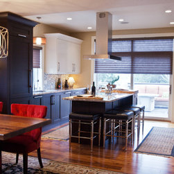 Transitional Kitchen with Contrasting Double Islands