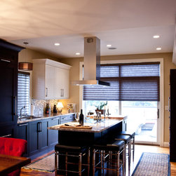 Transitional Kitchen with Traditional Hood & Contrasting Island