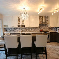 Transitional Black and White Kitchen Remodel w/Brown and White Kitchen Island
