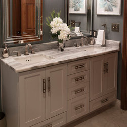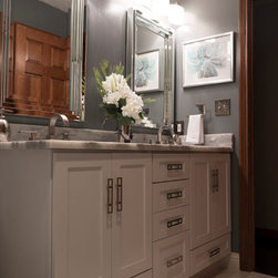 New hardware, a new vanity, and a new countertop can make all the difference in a remodeled bathroom!
