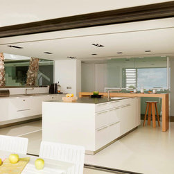 The daytime area –dining room and living room- is designed in a way that the exterior seems to enter the house so when seated on the sofa one can almost feel the sea. The same happens in the kitchen.
