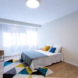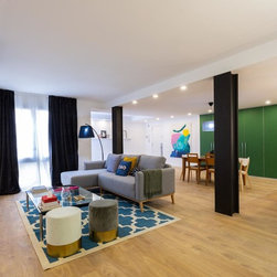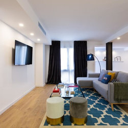 Esta vivienda es muy grande. Es un espacio interior. No da directamente a la calle pero está en la mejor calle de la ciudad de Tarragona, la Rambla Nova. Es muy espaciosa, tiene unos 140m2, 3 habitaciones, 2 baños y un salón -comedor-cocina espectacular. Sin duda la mejor parte de la casa.