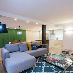 El proyecto era reconvertir un antiguo despacho de abogados en una vivienda familiar. Y aunque pueda parecer un problema que no dé a la calle, al estar ahí dentro no se oye nada, es como estar en un oasis de silencio en medio de la ruidosa ciudad.