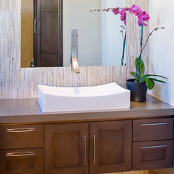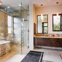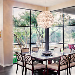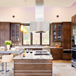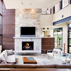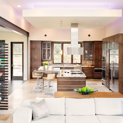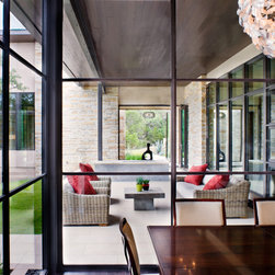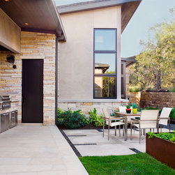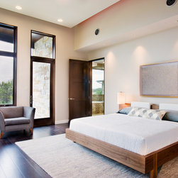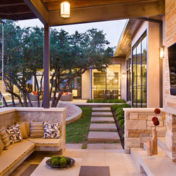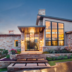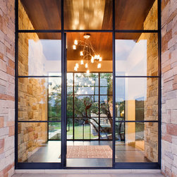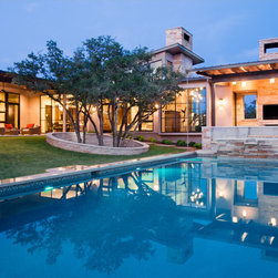 Attempting to capture a Hill Country view, this contemporary house surrounds a cluster of trees in a generous courtyard. Water elements, photovoltaics, lighting controls, and ‘smart home’ features are essential components of this high-tech, yet warm and inviting home.