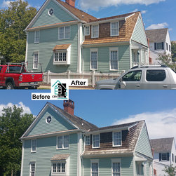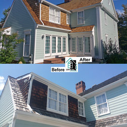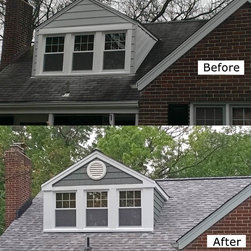 Client approach us for a roof shingle replacement. We propose extending the roof trim lines to give the boring looking dormer a new curb appeal looks.