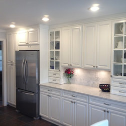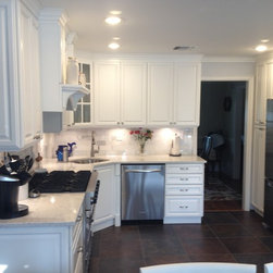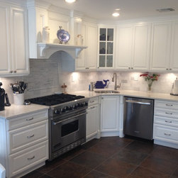 Pro Line white cabinets, Silestone counters and White Carrara marble backsplash.