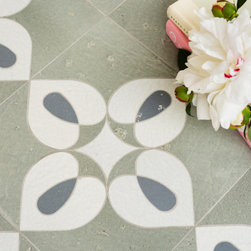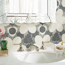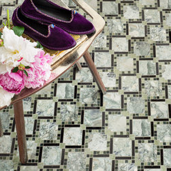 Zilia, a waterjet cut mosaic, shown in polished Eucalyptus, Silver Sage, and Magnolia, is part of the San Marco collection by New Ravenna.
