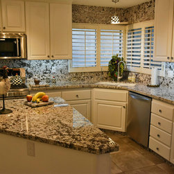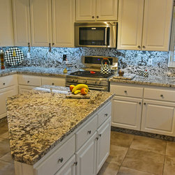 Scott's Kitchen turned out gorgeous after pairing the white cabinets with the Bianco Antico granite for the counters and backsplash. The customer also wanted granite toe kicks at the base of the cabinets instead of the standard wood toe kick so they can clean the floors more easily without having...
