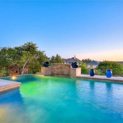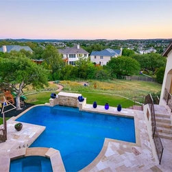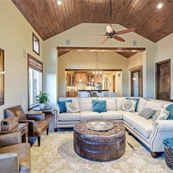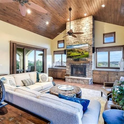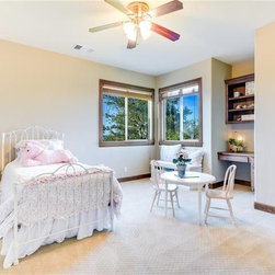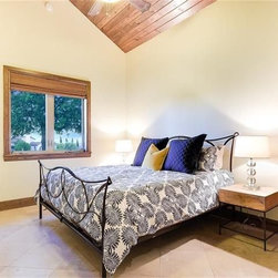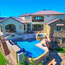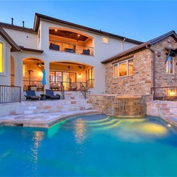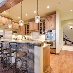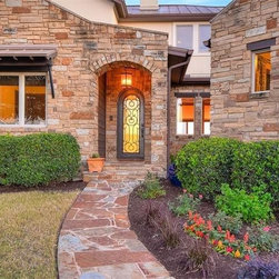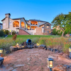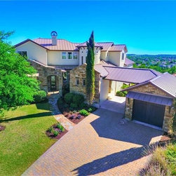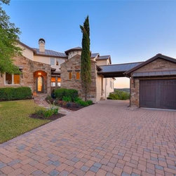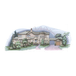 A really steep lot is the driving inspiration for this house. The porte cochere and the basement bedroom are some design features that were driven by the lot.
