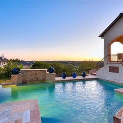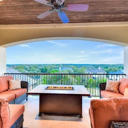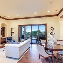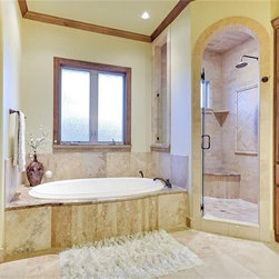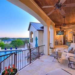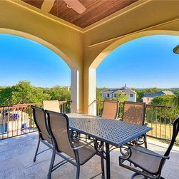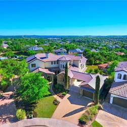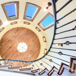 The circular stair tower is a central element in the design of the home along with the entry courtyard.