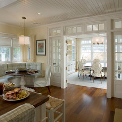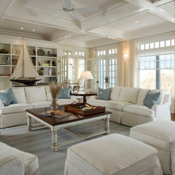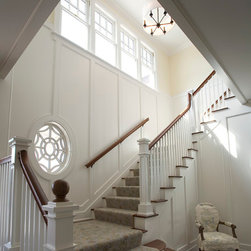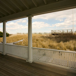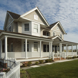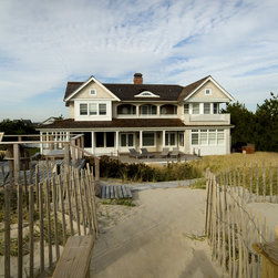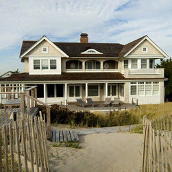 Set along a wide, ocean front vista, the design of this residence was inspired by the regional, historical homes of the surrounding area. The shingle-style house is designed to take advantage of the magnificent ocean views and breezes. The front entry with its welcoming milled walls and stair wraps the room as it ascends to the second floor sleeping quarters.
