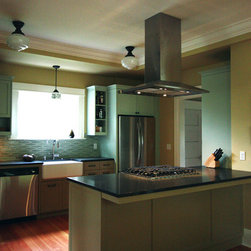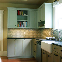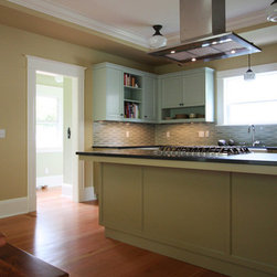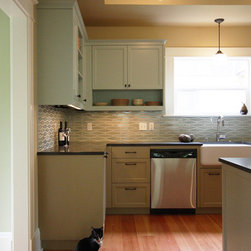 This full kitchen remodel in a historic bungalow in Portland's Irvington neighborhood features a modern take on the shaker aesthetic. Designed by
