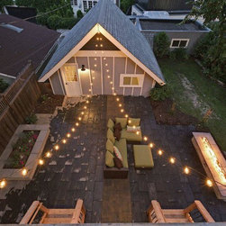 This client wanted to create an outdoor entertaining space, to feel as an extension of the living space. the yard was small, so maximizing the usable space was key. the patio is defined into two areas, separated with a seem of pavers to give dimension and texture. the custom built fire table gives the space that wow factor the client was looking for.