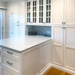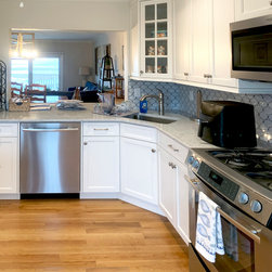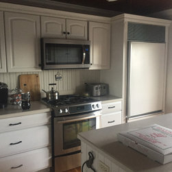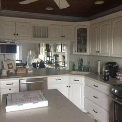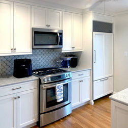 This #monmouthcountykitchen just received a #designrefresh! From a #traditional look with raised paneling, dental moulding and bead board backsplash to a cleaner contemporary design with recessed cabinetry and marble mosaic backsplash. Removal of the wood ceiling and new tall #cabinetry helped to...