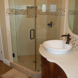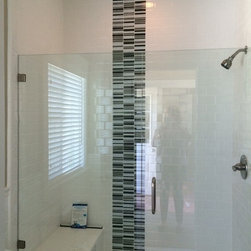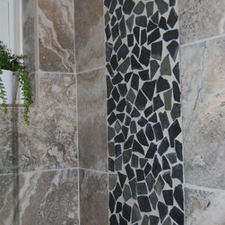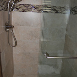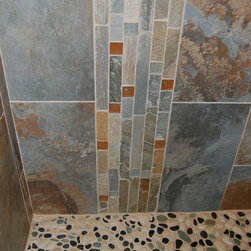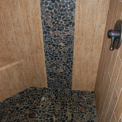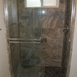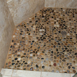 Glass Tile & Pebble Pan Shower