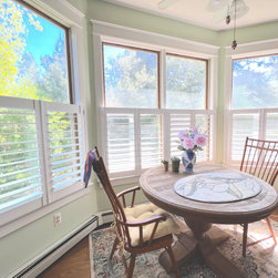 Cafe style shutters finish off this entry room in a home just off the family porch!