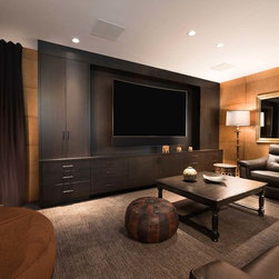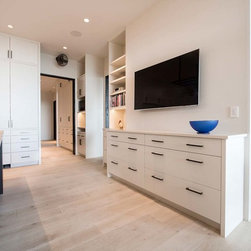 The eclectic style throughout this custom home allows each room to take on its personality and geographical influence. The woods and styles chosen by the homeowner are all different, but the common theme throughout the home is extravagant architectural millwork and custom cabinetry.