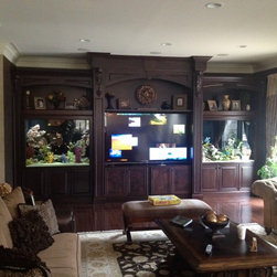 Family Room Entertainment Center with Built In Fish Tanks.